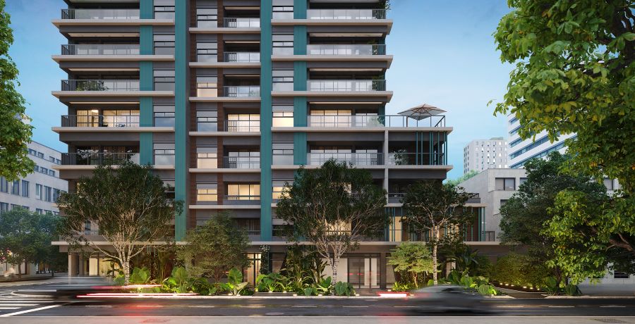 Projeto arquitetônico moderno, que traduz o novo momento da cidade, onde mobilidade e facilidade de integração com o bairro e arredores demonstram o novo estilo de vida inteligente que o morador de uma cidade cosmopolita como São Paulo merece.- Projeto de Arquitetura: IDE Studio